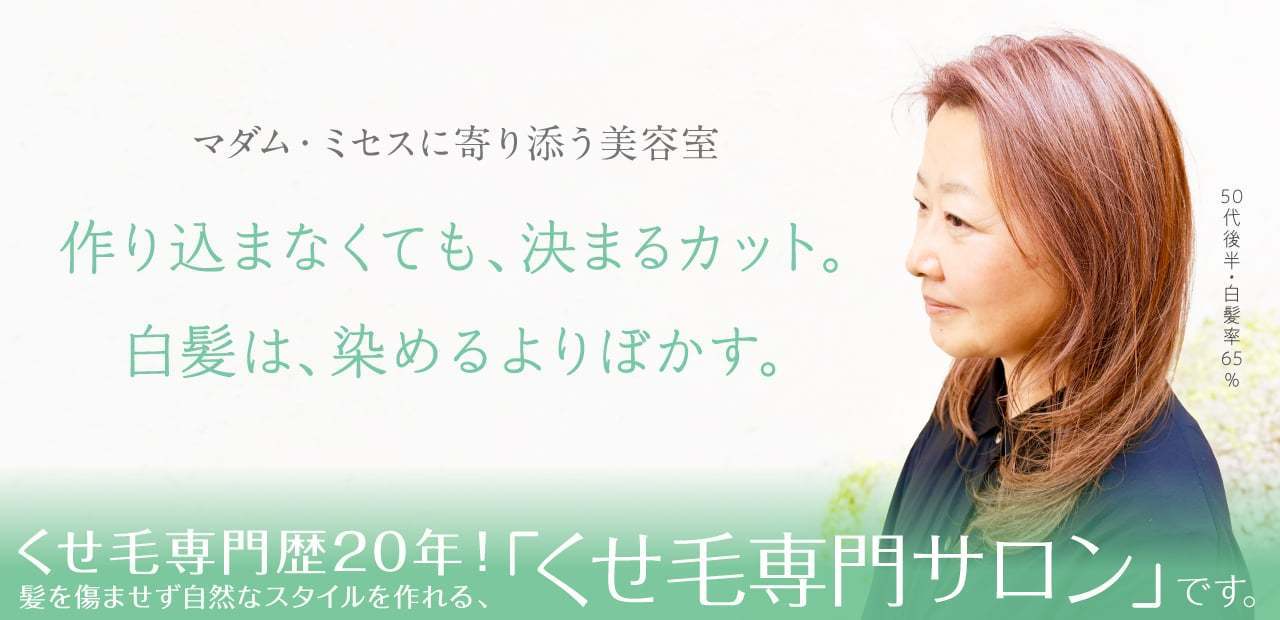 どんなくせ毛でもカットだけで決まる。くせ毛で悩んでいる・白髪染めを卒業したい方におすすめです。